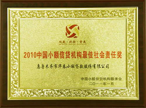 中國首屆小貸優秀機構評選揭曉——華春小貸榮獲“2010中國小額信貸機構競爭力100強”、“2010中國小額信貸機構最佳社會責任獎”