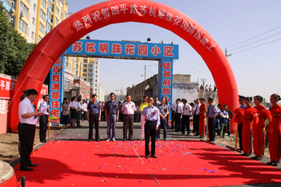 6月2日,蘇杭明珠花園小區張燈結彩、鑼鼓喧天、鞭炮齊鳴,一派歡慶。慶賀四平路蘇杭明珠花園小區路段竣工儀式正在這里舉行。對于居住在的蘇杭明珠花園小區1600多戶業主來說,是個值得慶賀的大喜日子,已建成的四平路路段直達蘇杭明珠花園小區大門,這標志著,從此這里的住戶出行將極為便利。自治區工商聯副主席艾爾肯·木沙、會員部部長鄭文琦、市工商聯黨組書記葉齊和高新區的領導出席了四平路蘇杭明珠花園小區路段建成儀式,并和來賓共同剪彩。