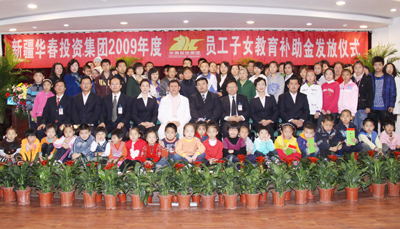11月1日,華春投資集團員工的近百名子女歡天喜地的迎來了一個在首府乃至在全疆絕無僅有的特殊節(jié)日——華春投資集團舉辦2009年首批員工子女教育補助金的啟動儀式,當天就有84個員工家庭的子女領到了近十萬元教育補助金,其中有一個員工家庭的3個子女同時獲得教育補助金,另一個員工家庭的兩個子女獲得了7000元。