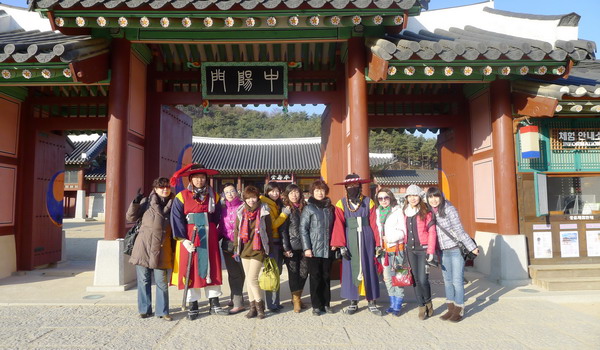 赴水源,游韓國民俗村,觀《大長今》拍攝點,還與身著古裝的保安留個影。