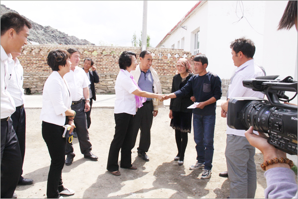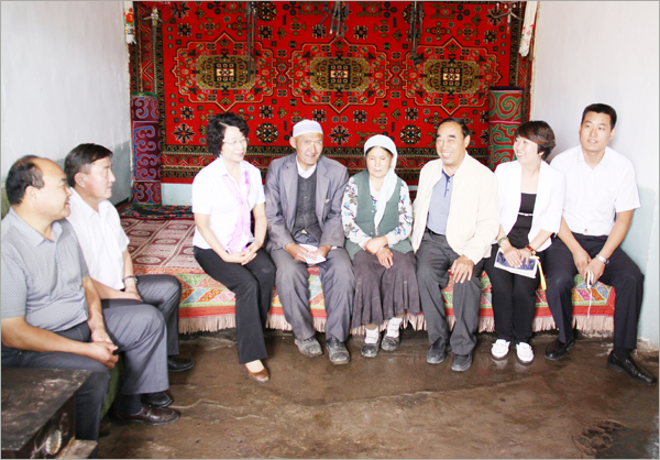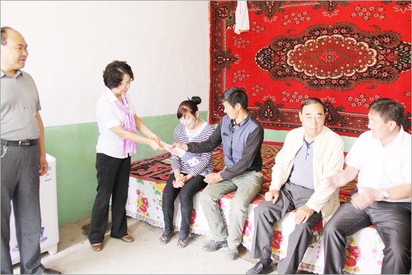 華春慰問組與五家渠師市有關(guān)領(lǐng)導在北塔山牧場負責人的陪同下,驅(qū)車先后來到下面的各牧業(yè)連隊,慰問那里的困難牧民。那些受到華春資助的困難牧民家庭,當接過華春慰問組給他家送來的500元慰問金時,感動得一時不知說什么好。對于他們素不相識的華春,卻特地在他們過節(jié)之前,來到他們都極少走出去的山溝,給予他們資金上的幫助。北塔山牧場畜牧二隊的卡斯木別克•努熱阿合麥提、牧場畜牧一隊的蘭黑恩•薩納提等牧民,一定要華春慰問組人員留下喝茶,要把過節(jié)的羊宰了招待華春人。看到華春慰問組人員謝絕而要離開他們時,緊緊握著華春慰問組人員的手。
