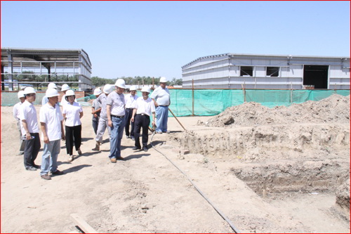 建筑工地,暑氣蒸騰,華春黨委書記嚴(yán)天利、工會主席高青、總裁助理李榮桂等行政管理人員在工地與一線施工人員親切交談,了解工程的建設(shè)進(jìn)度,親切詢問了工人們的作息時間和生活情況,對工人們戰(zhàn)高溫、搶工期、保質(zhì)量的高尚敬業(yè)精神給予了高度評價。希望一線人員要保重身體,嚴(yán)格按照安全操作規(guī)程進(jìn)行施工,以確保暑期的施工安全。