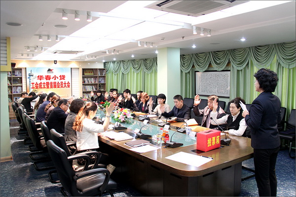 大會(huì)在雄壯的國(guó)歌聲中正式開始,由工會(huì)籌備工作組成員華春小貸人力資源總監(jiān)王錫輝作了《華春小貸工會(huì)籌備工作報(bào)告》;工會(huì)籌備工作組成員華春小貸副總經(jīng)理賀梁宣讀了《華春小貸第一屆工會(huì)委員、女工委委員、經(jīng)審委委員產(chǎn)生選舉辦法》,并提交大會(huì)表決通過。工會(huì)籌備工作組成員華春小貸總會(huì)計(jì)師安曉輝宣讀了《中華人民共和國(guó)工會(huì)法》。