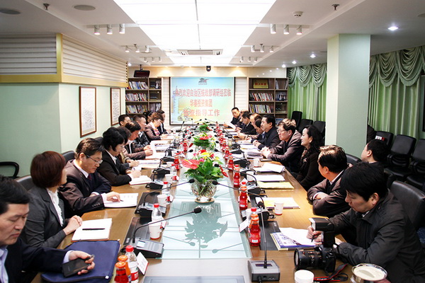 自治區調研組主要是對市非公企業關于傳達學習黨的十八屆三中全會及“12.19”中共中央政治局常委會會議、習近平總書記重要講話情況和非公企業開展雙教實踐活動、工商聯基層商會組織建設及貫徹自治區黨委(2011)26號文件情況,進行實地考察。在高新區(新市區)選擇了3家非公企業,首先來到華春集團進行調研。