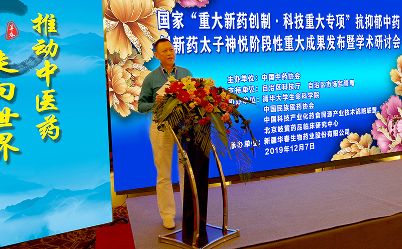 為深入貫徹中共中央國務院《關于促進中醫藥傳承創新發展的意見》和習近平總書記對中醫藥工作重要指示,12月7日,由中國中藥協會主辦、清華大學生命科學院、中國民族醫藥協會等單位協辦的國家重大新藥創制•科技重大專項”抗抑郁中藥創新藥“太子神悅”重大成果發布會,在新疆首府烏魯木齊隆重舉行。中國中醫藥界的專家學者、全國知名投資機構、自治區有關單位的領導、自治區和兵團相關企業代表、金融機構以及各界嘉賓約130多人參加了會議。