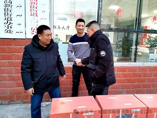 龍開新歲月,迎春送溫暖。在龍年新春佳節(jié)即將來臨之際,為感謝企業(yè)所在社區(qū)工作人員和派出所民輔警對轄區(qū)安全穩(wěn)定與和諧所作出的貢獻,受新疆華春投資集團董事局主席兼總裁李成功的委托,由集團高級副總裁李榮桂帶隊攜行政辦及有關(guān)子公司人員一行攜帶著慰問品,于2月6日前往長春中路派出所、王家溝派出所、鉆石城派出所和昆明路社區(qū)、錦程社區(qū)、沙坪社區(qū),向社區(qū)工作人員和派出所警務(wù)人員進行慰問并致以節(jié)日的祝福。