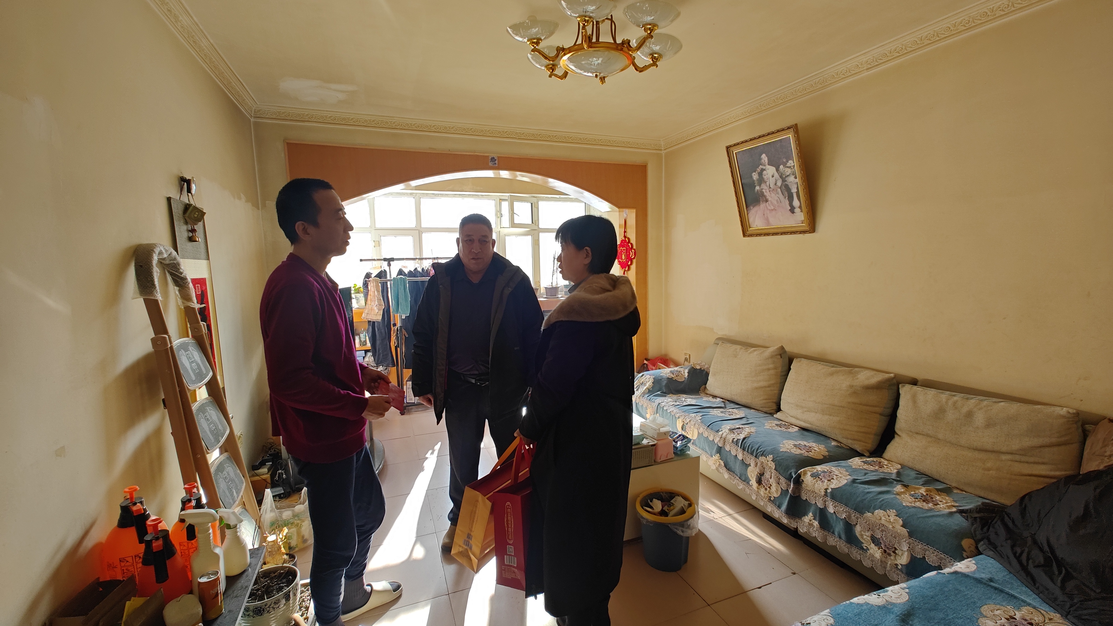 情系員工,暖意融融。1月15日,受新疆華春投資集團董事局主席兼總裁李成功先生委托,集團副總裁馬生忠攜子公司總經理助理尹海玲、集團企業文化中心主管韓剛一行,攜帶1500元現金及精心準備的營養品,前往集團子公司華景物業患病員工丁兆賓的家中進行慰問。