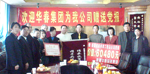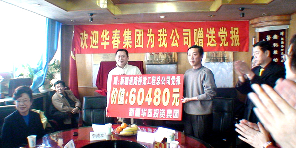 新疆華春投資集團(tuán)董事局主席兼總裁李成功先生向道路橋梁工程總公司贈送價值60480元的黨報