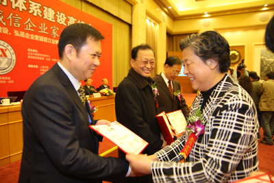 “企業(yè)信用評價(jià)AAA①級誠信企業(yè)”和“2009中國十大誠信企業(yè)家”獎(jiǎng)項(xiàng),是商務(wù)部研究院信用評級與認(rèn)證中心依據(jù)國家有關(guān)法律法規(guī),按照一定程序,集企業(yè)的債權(quán)債務(wù)管理、合同履行、公共記錄以及財(cái)務(wù)等信息,通過企業(yè)誠信評價(jià)模型進(jìn)行科學(xué)評估出來的,旨在區(qū)分良莠、獎(jiǎng)優(yōu)罰劣,為我國企業(yè)參與國內(nèi)外市場競爭創(chuàng)造必要的信用條件。信用等級由低向高依次為A級、AA級、AAA級、AAA①級。對信用等級達(dá)到A級以上的企業(yè),商務(wù)部都要在國家級權(quán)威媒體上進(jìn)行公示。