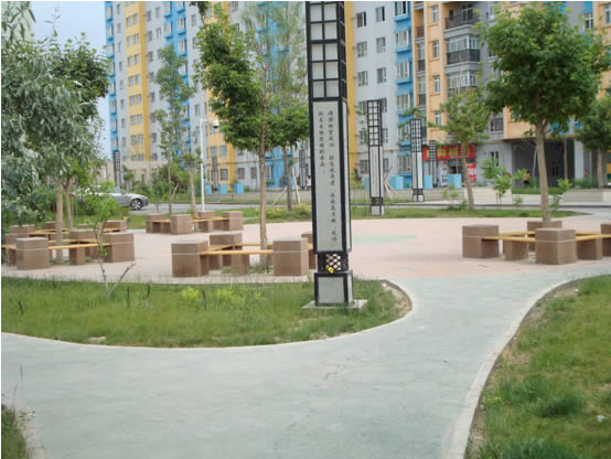 蘇杭明珠花園小區內總高近百米、地上建筑31層的華春鑫座,是河南東路地標性建筑,打造華春鑫座周圍的園林綠化更是這項綠化工作的重點之一,僅華春鑫座周圍的園林綠化,公司就投資100余萬元。華春鑫座周圍地面全部為花崗巖石材鋪貼,修建了廊架、亭臺、大小花壇共計9個,花壇內種植了各色花卉,鵝卵石及青石板鋪貼的休閑園路,人性化的休息座椅隨處可見,給主業創造了一個愜意的休閑小憩的綠色環境。