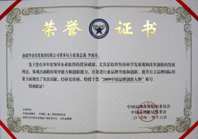 “2009中國(guó)品牌創(chuàng)新人物”稱號(hào)